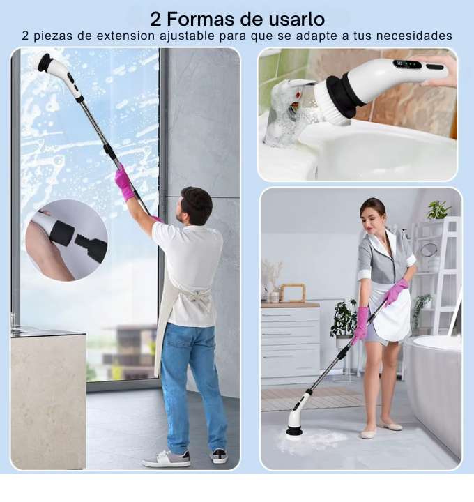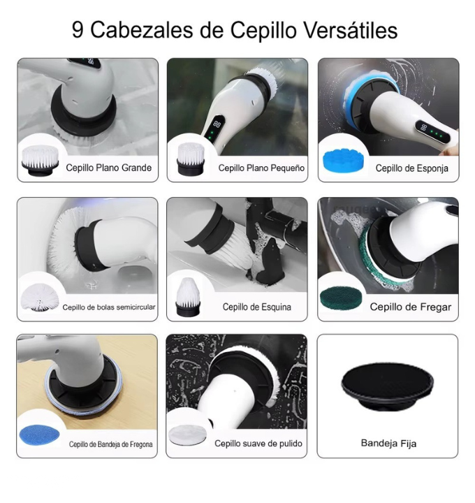 El TurboClean Pro 9 en 1 utiliza un motor de alta potencia y cabezales especializados para adaptarse a cada superficie. Su rotación y diseño ergonómico permiten una limpieza profunda, eliminando grasa, moho y polvo en segundos. La extensión telescópica añade alcance, mientras la batería recargable asegura comodidad y movilidad.